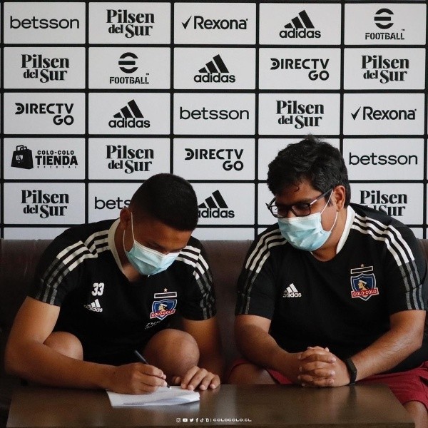 Colo Colo dio a conocer a través de sus redes sociales el primer contrato como profesional de Eduardo Villanueva, portero de 17 años que está en Argentina con el primer equipo.