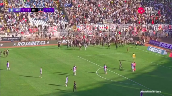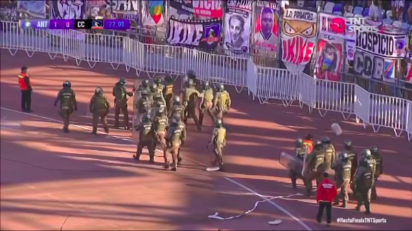 Tras el tanto del volante de 22 años, una gran cantidad de hinchas ingresaron a la cancha para celebrar con los jugadores. Tras esto, un gran contingente de Fuerzas Especiales de Carabineros tuvo que entrar al recinto.