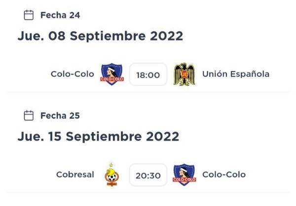 Es por eso que hoy la ANFP dio a conocer la programación de dos partidos del Campeonato Nacional. La Fecha 24 donde Colo Colo recibe a Unión Española y la Fecha 25 cuando el Cacique visita a Cobresal.