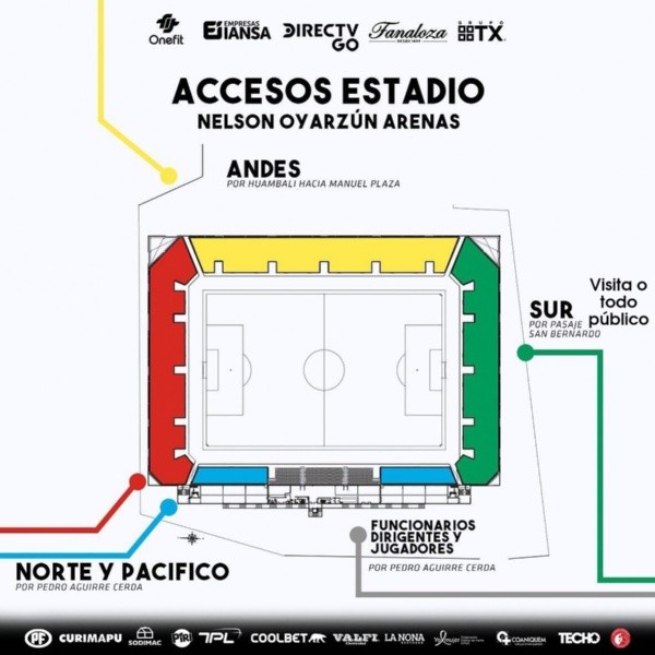 Si bien no ocupan la palabra visitantes, en el esquema del estadio se puede ver claramente un “Sector Sur, Visita o todo público”. Colo Colo parte a Chillán y tendrá el apoyo del hincha colocolino.