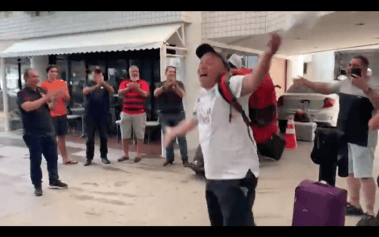 Ante eso un puñado de hinchas que ya se encuentran en Fortaleza fueron captados por el lente del medio de comunicación GE Globo Sport, donde se le puede ver con torcedores de Sport Recife.