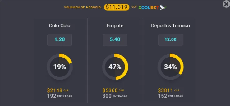 Para el OSO de Coolbet, el gran favorito para ganar este partido de la tercera fase de la Copa Chile 2022 es Colo Colo, que paga 1,28 veces lo que juegues, por sobre los 12,00 que paga Deportes Temuco por su triunfo. Pero, si te la juegas por el empate, este resultado de la ida paga 5,40 veces lo que apuestes.