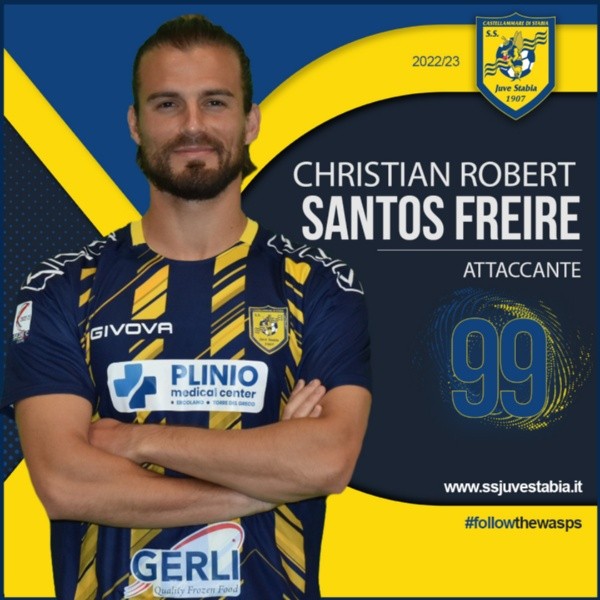 “La Juve Stabia anuncia que ha llegado a un acuerdo para la adquisición de las prestaciones deportivas del delantero Santos Freire Christian Robert. El futbolista, oriundo de Puerto Ordaz (Venezuela), creció en el fútbol de Bielefeld y también vistió, entre otras, las camisetas de KAS Eupen, Waasl.-Beveren, NEC Nijmegen, Alavès, Deportivo La Coruña, de Vfl Osnabruck y Colo Colo.Santos eligió el 99 como número de camiseta”, anunciaron.