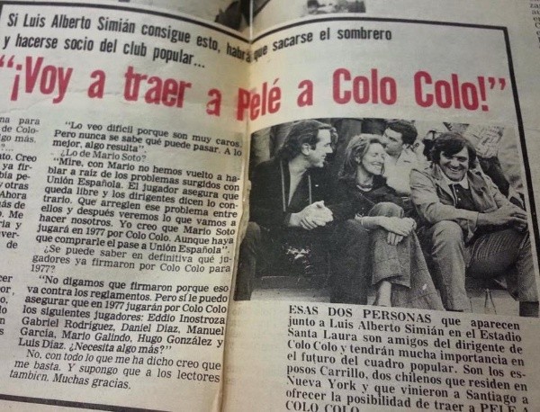 En redes sociales se pudo ver un recorte de un diario de los años 70’, en el cual se aprecia que Luis Alberto Simián, presidente del club en ese entonces, afirmó que iban a poner sus esfuerzos en traer a O Rei al Popular en la recta final de su carrera. “Voy a traer a Pelé a Colo Colo”, señaló.