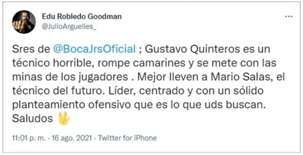 Dentro de los nombres sugeridos aparecieron los de Mario Salas, José Luis Sierra y hasta Gualberto Jara fueron parte de la lista de los chilenos donde se citaba a las cuentas oficiales de Boca en redes sociales. Revisa las principales publicaciones.