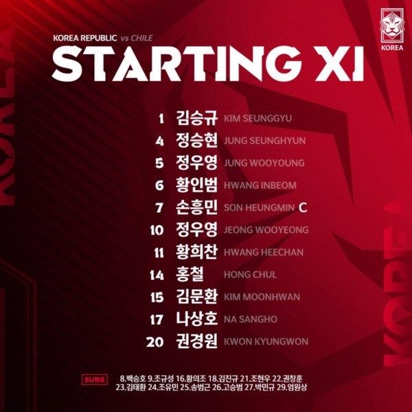 Por otro lado, hace pocos instantes, el Toto dio a conocer la oncena con la que enfrentará al cuadro surcoreano, donde destacan los debuts absolutos de Alex Ibacache de Everton de Viña del Mar y Nayel Mehssatou del K. V. Kortrijk de la primera división de Bélgica.