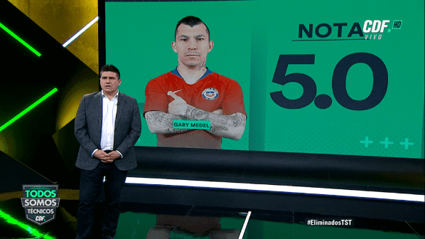 Gary Medel (5,0): “Está a la altura, mejoró bastante, hoy la parte defensiva no estuvo bien pero él se salva”.