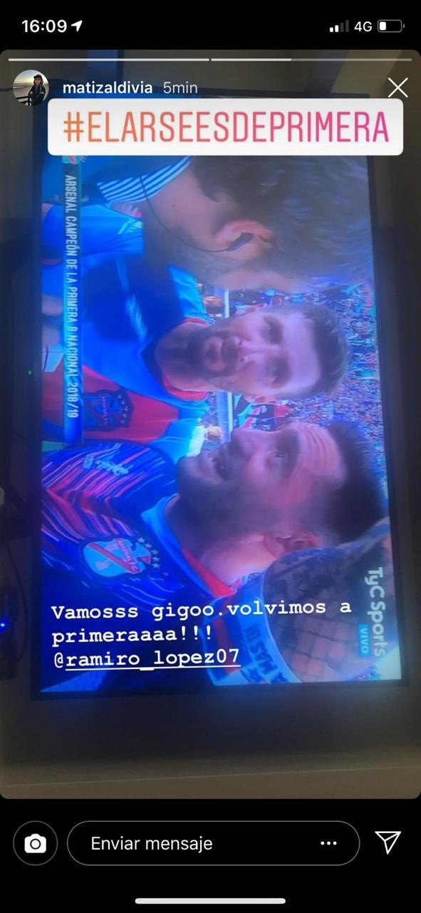 Este domingo, nuevamente mostró su cariño por su ex casa, celebrando el ascenso del equipo que venció 1-0 a Sarmiento en el partido de definición del campeonato. Ambos equipos habían llegado con 46 puntos y definieron el título a partido único en el Estadio Florencio Sola, la cancha de Banfield.