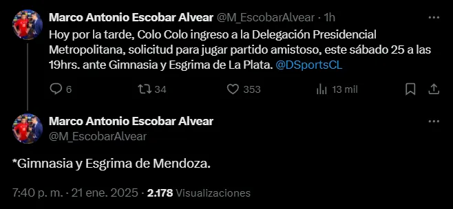 Según el periodista de DSports, Marco Escobar, Blanco y Negro ingresó la tarde de este martes una solicitud en la Delegación Presidencial de la Región Metropolitana para agendar un amistoso ante un equipo argentino: Gimnasia y Esgrima de Mendoza, conjunto que milita en la Primera Nacional de Argentina (segunda división).