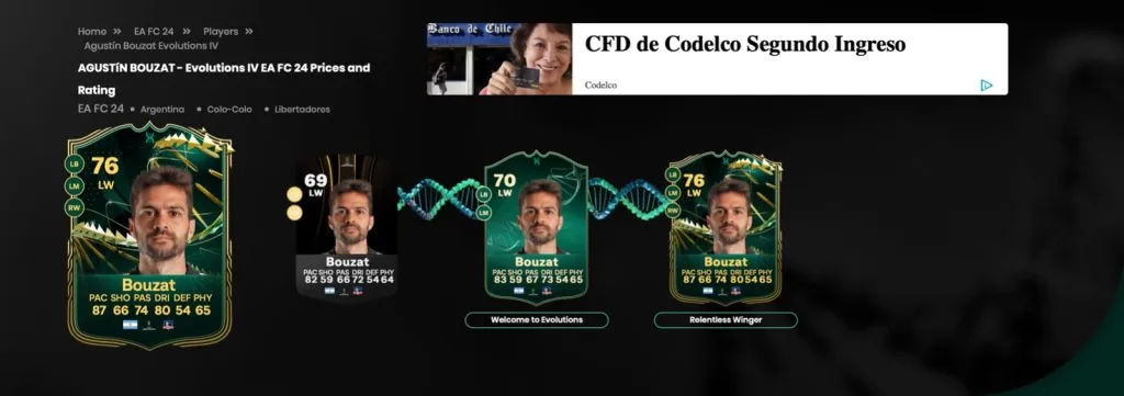 Sin embargo, para el bien del hincha colocolino y amante del EA FC 24, salió un nuevo tipo de carta que se llama Evoluciones. Pero, ¿qué es esto? Es una nueva manera de mejorar nuestras cartas sin depender de una apertura de sobre o que equipos ganen x cantidad de partidos en distintas competiciones.