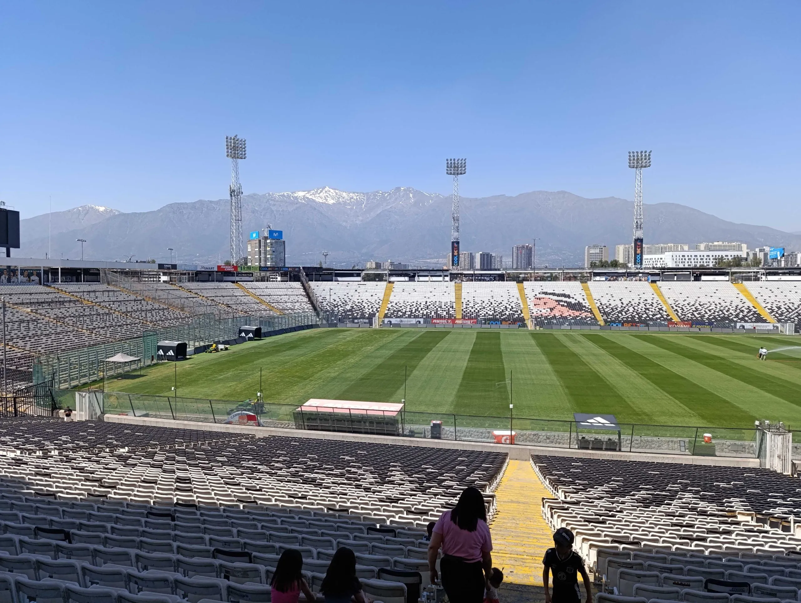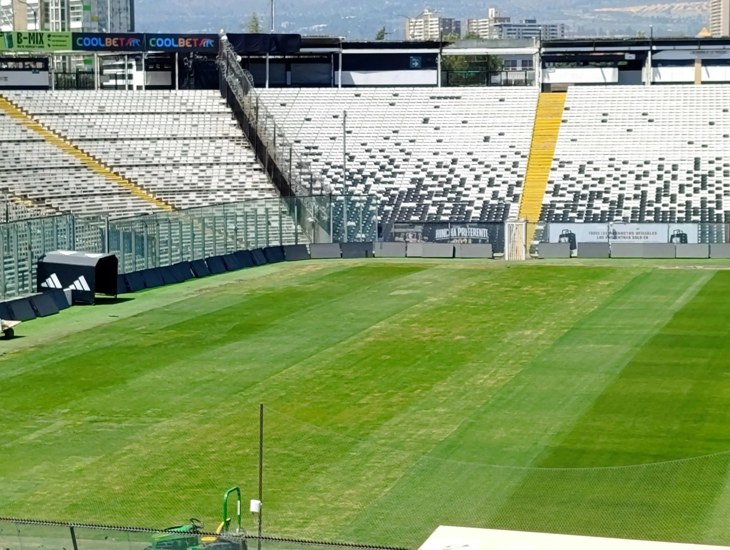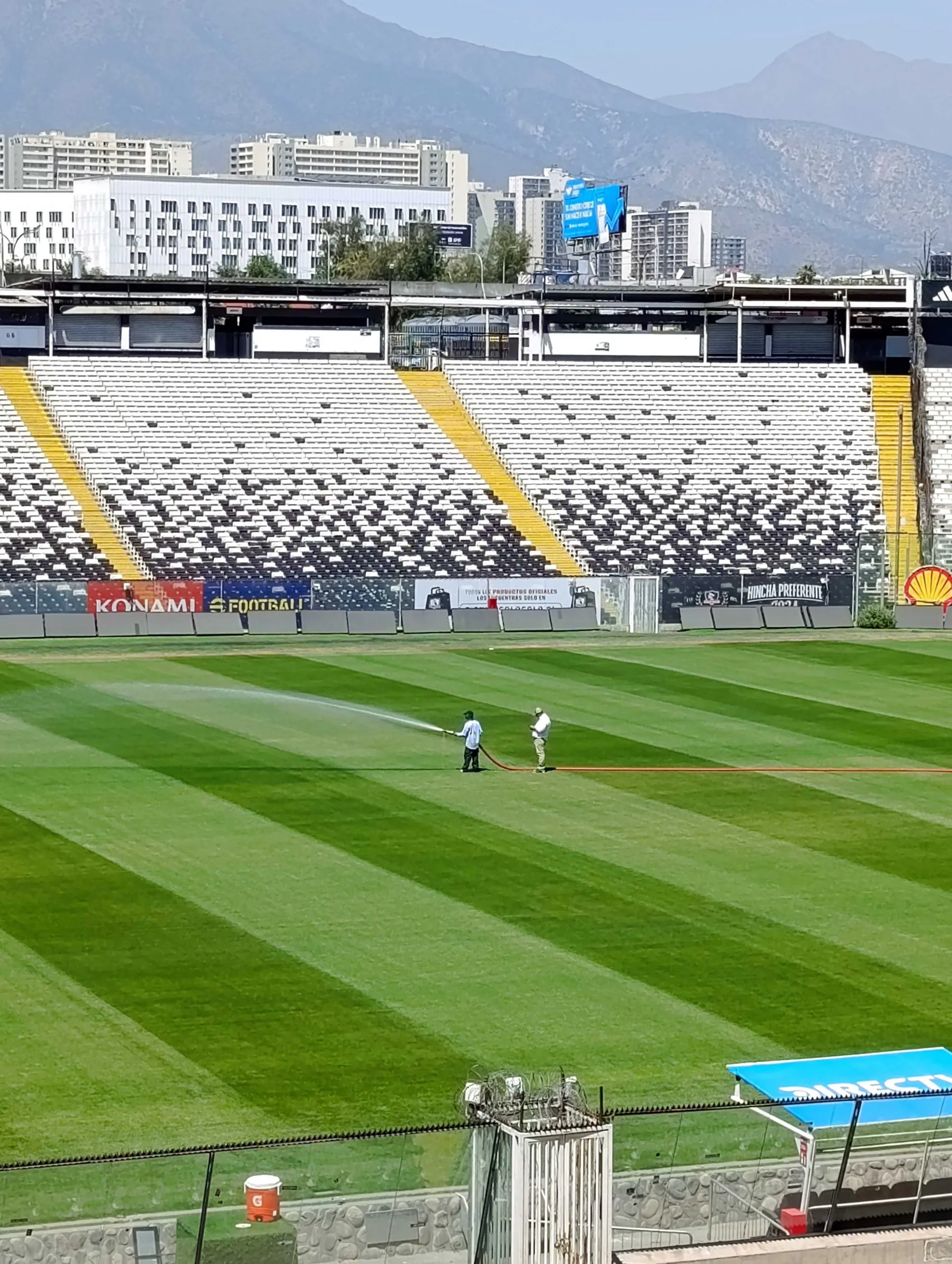 En el arco del sector norte, hacia donde se posiciona la barra colocolina, se puede presenciar visualmente algunos sectores del gramado que están faltos de agua. No así en los otros sectores donde se instalaron especies de planchas para el cuidado del césped considerando la gran cantidad de público que presenciaría en cancha el concierto del cantante británico.