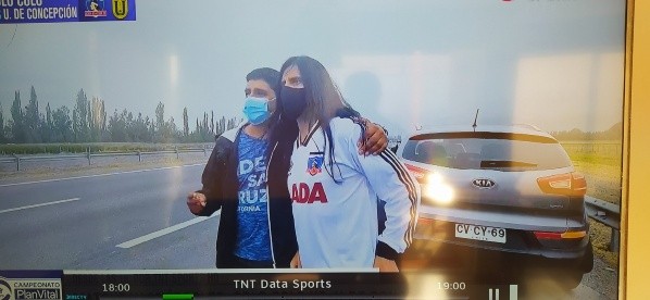 Coca Mendoza, con la familia colocolina, sufrió en manos del chorro del guanaco y tuvieron que salir corriendo, mientras se acercaba el bus de Colo Colo por la Ruta 5 Sur. Una pena grande.
