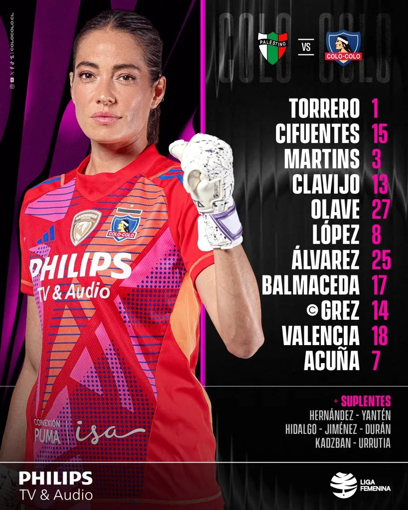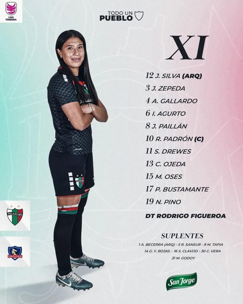 Palestino también confirma su formación para recibir a Colo Colo en la ida de los cuartos de final de la Liga Femenina en La Cisterna.