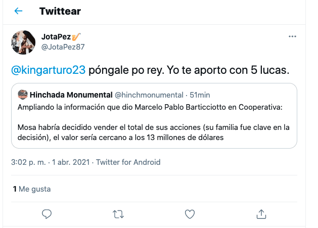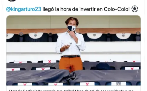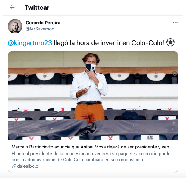 “Llegó la hora de invertir en Colo Colo” o “Es la oportunidad de salvar a Colo Colo”, son una de las tantos mensajes que le han llegado al King en su cuenta personal de Twitter. ¿Te gustaría?