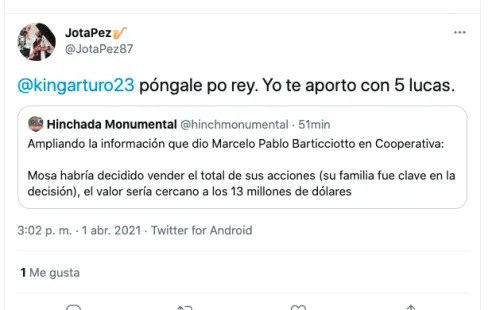 Algunos fanáticos del Cacique piden a través de Twitter que el King compre las acciones de Aníbal Mosa.