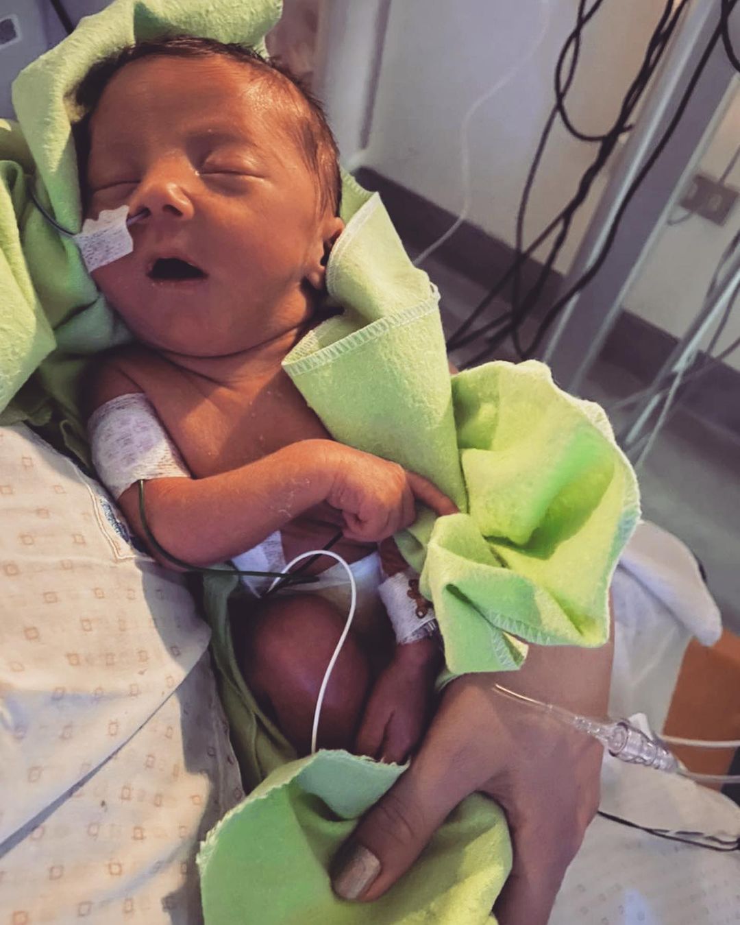 El mágico momento fue compartido por el propio Maxi Falcón en su Instagram personal, publicando tres fotografías con el mensaje “¡por fin te pudimos tener en nuestros brazos! De a poquito cada día más fuerte te amamos mucho”.