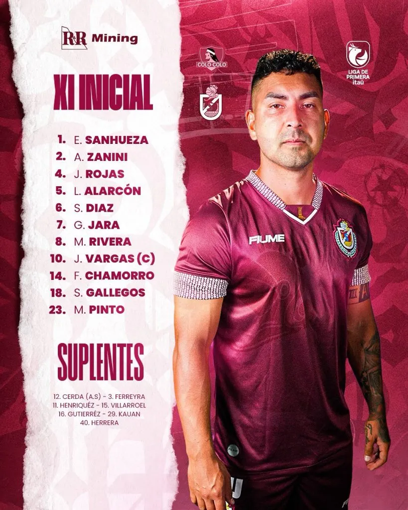 El banco de suplentes está compuesto por Brayan Cortés como arquero alternativo, Daniel Gutiérrez, Bruno Gutiérrez, Óscar Opazo, Víctor Felipe Méndez, Francisco Marchant y Marcos Bolados.