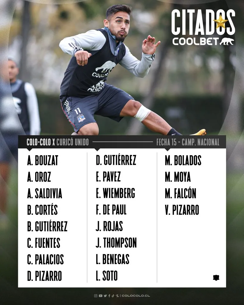 Vale destacar, que el estratega argentino nacionalizado boliviano citó a un total de 20 futbolistas para el encuentro frente a Curicó Unido. De esta manera, serán dos los jugadores que queden fuera de la nómina final, que buscará terminar de la mejor manera la primera rueda del Campeonato Nacional.