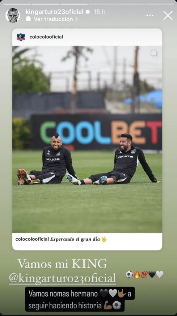 En su cuenta de Instagram, el Huaso colgó una foto entrenando junto al volante, la cual decía “Vamos mi King”, a lo que el mediocampista de 37 años respondió con un “Vamos no más, hermano, a seguir haciendo historia”.