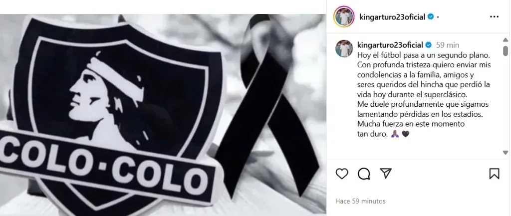 Uno que se refirió a esta situación fue nada más ni nada menos que Arturo Vidal, quien a través de sus redes sociales, compartió un sentido mensaje y le envió las condolencias a los familiares del fallecido.