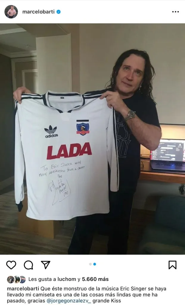 No obstante, el baterista de la banda estadounidense recibió un especial regalo. Fue el propio Marcelo Barticciotto quien compartió en sus redes sociales una imagen en la cual Eric Singer posaba con una histórica camiseta de Colo Colo.