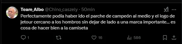 El problema es que rompe con la armonía de la camiseta del Centenario. De hecho, no son pocos los que opinan que, perfectamente, se pudo ubicar el parche en una de las mangas de la camiseta para que todo se viera uniformemente repartido. O, simplemente, poner una de las marcas del medio en otro lugar. Aunque eso ya es casi imposible por un tema contractual con el auspicio.