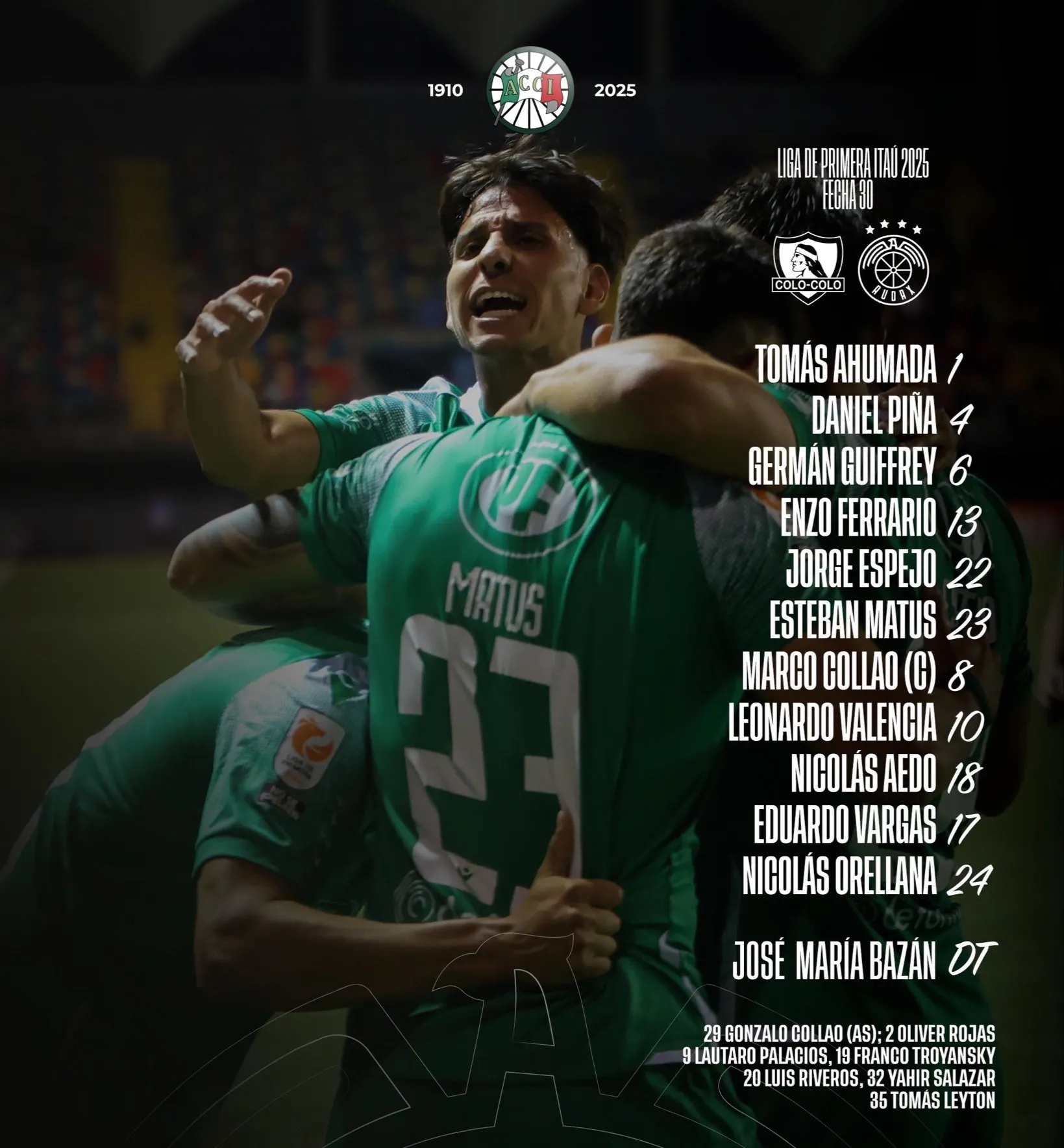 El conjunto Itálico también tiene formación confirmada para enfrentar a Colo Colo en el Monumental.