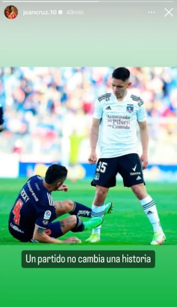 Su amigo del alma y quien también salió de Colo Colo por la puerta de atrás, Joan Cruz, subió también una historia a redes sociales. El talentoso volante, figura del Superclásico jugado en Rancagua durante el año 2021, publicó algo parecido a Thompson: “Un partido no cambia una historia”.
