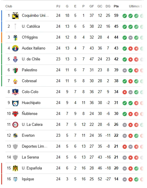 Colo Colo ya piensa en su próximo partido: Programación y resultados de la fecha 24