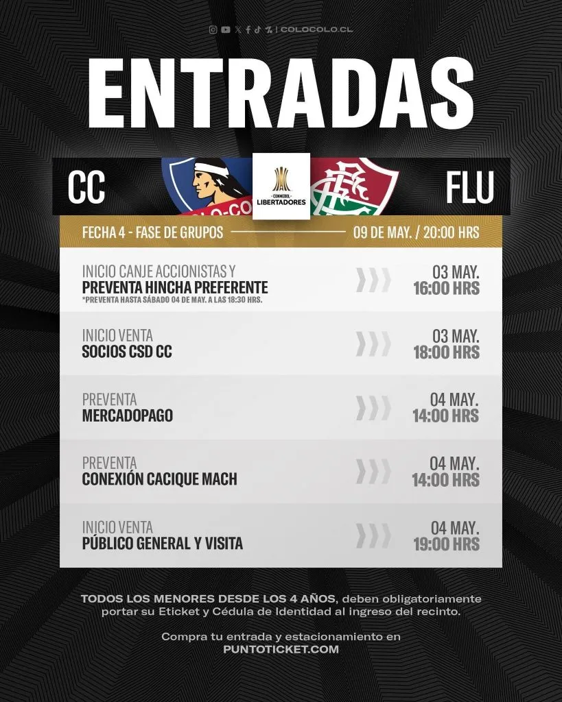 Revisa los horarios de la venta de entradas para el Colo Colo vs Fluminense