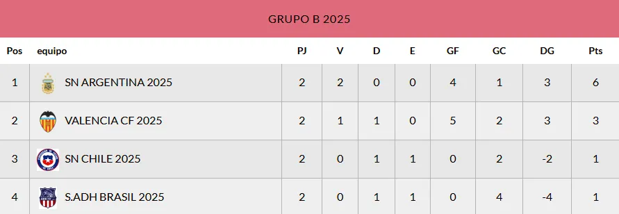 Tabla de posiciones del grupo B del torneo de Alcudia