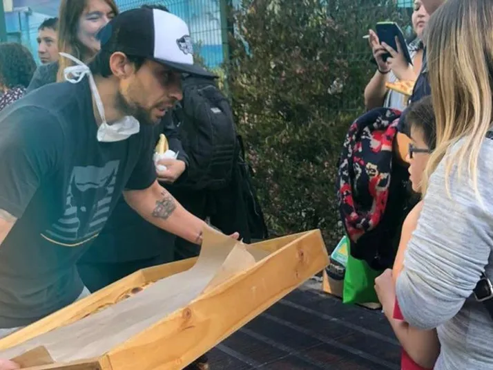 Valdivia sale a la calle y regala empanadas en la estación Tobalaba